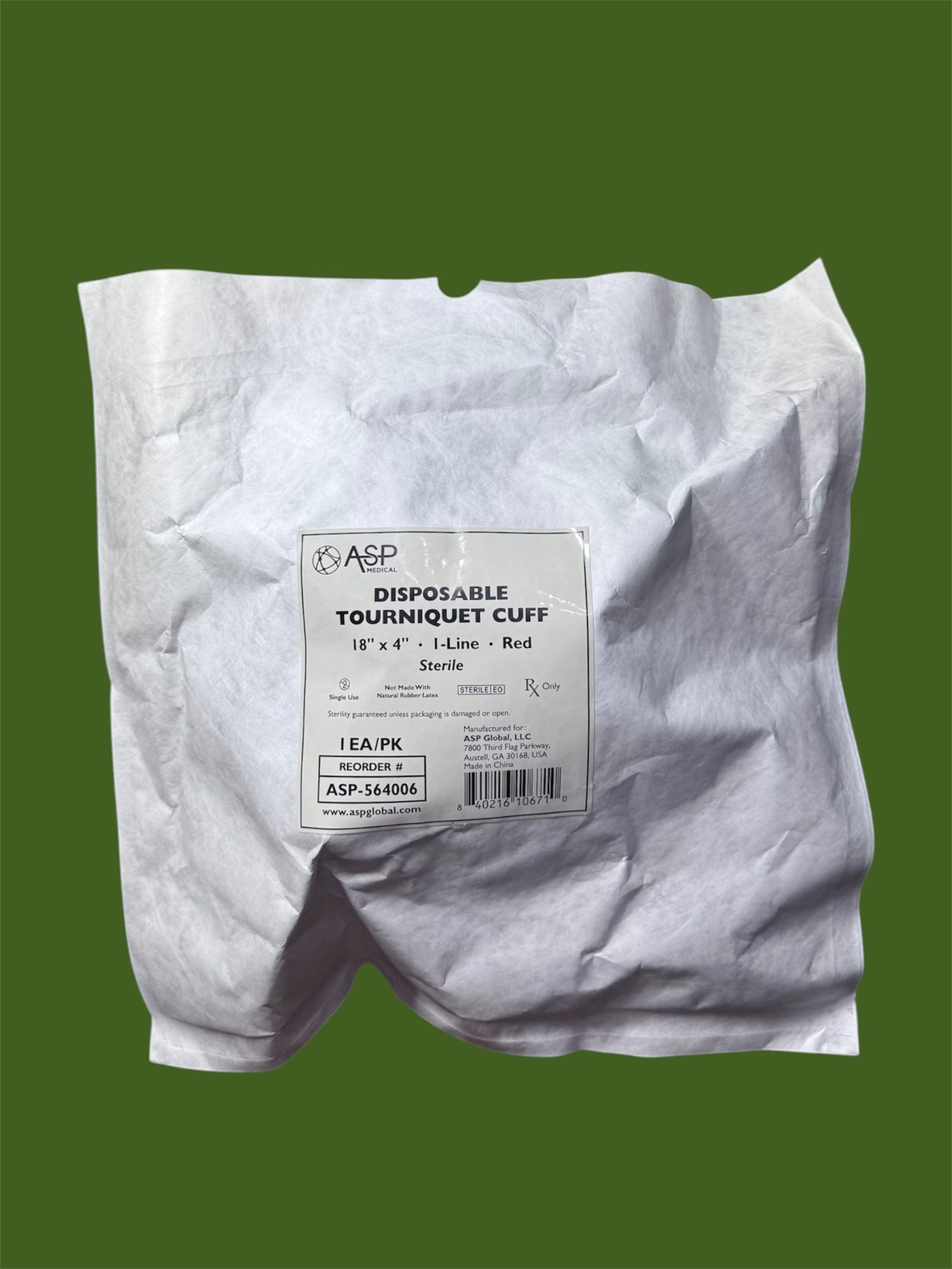 ASP Medical ASP-564006 Disposable Tourniquet Cuff – 18” x 4” (Red) – Sterile