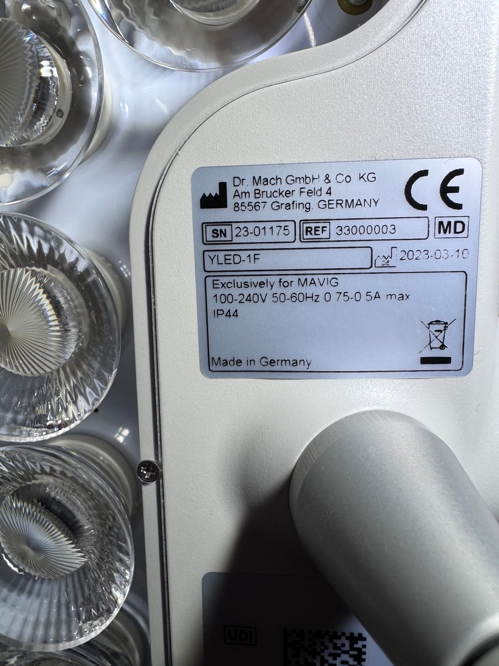 The MAVIG YLED-1F is a premium LED surgical and examination light built for precise illumination in professional medical settings. Manufactured in Germany, it delivers consistent brightness, excellent color accuracy, and long-term reliability. Its compact, focusable design makes it ideal for both examination rooms and operating suites requiring clear, shadow-free lighting.