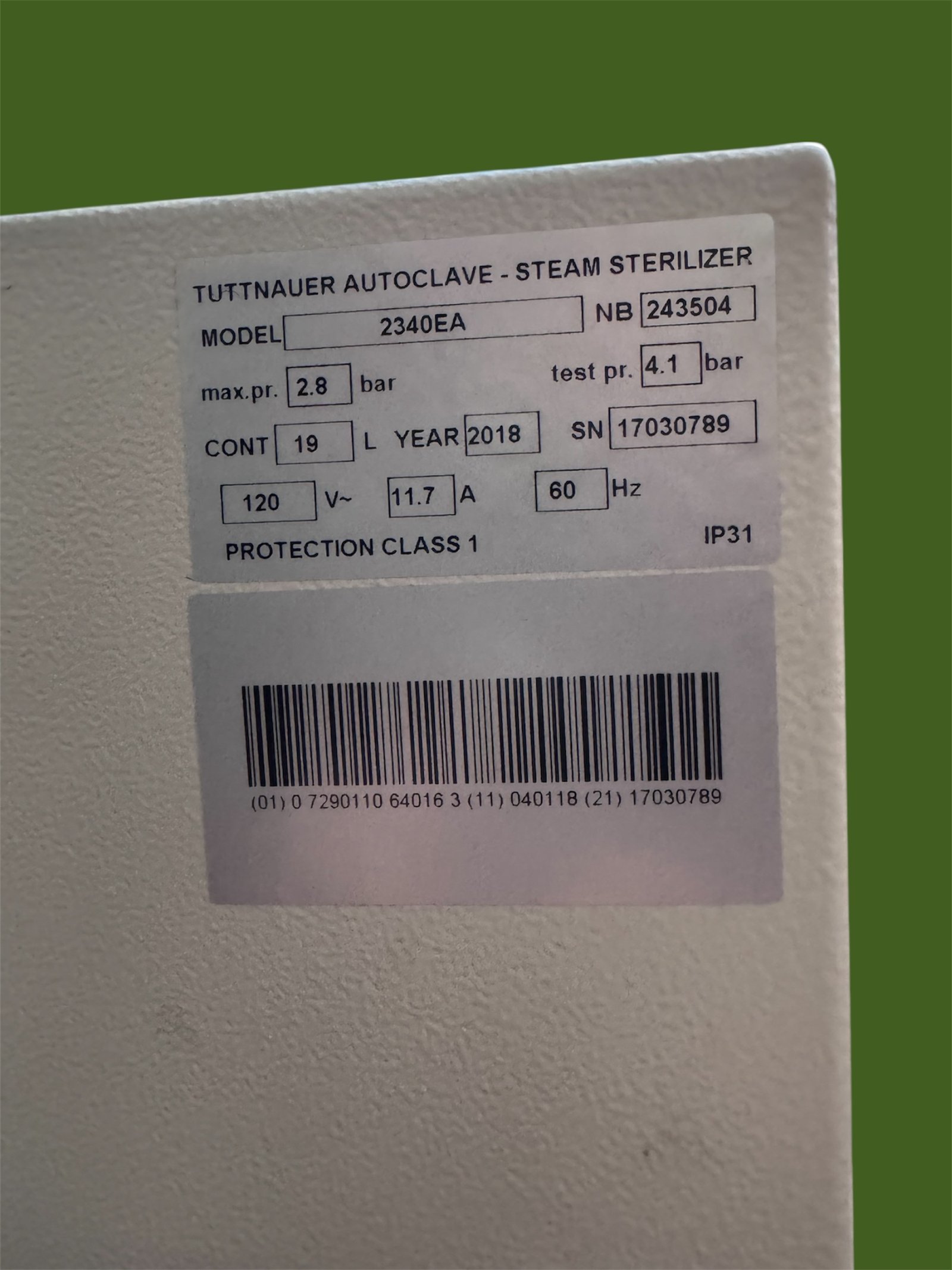 Tuttnauer 2340EA Autoclave | Automatic Steam Sterilizer (2018 Model, 558 Cycles)