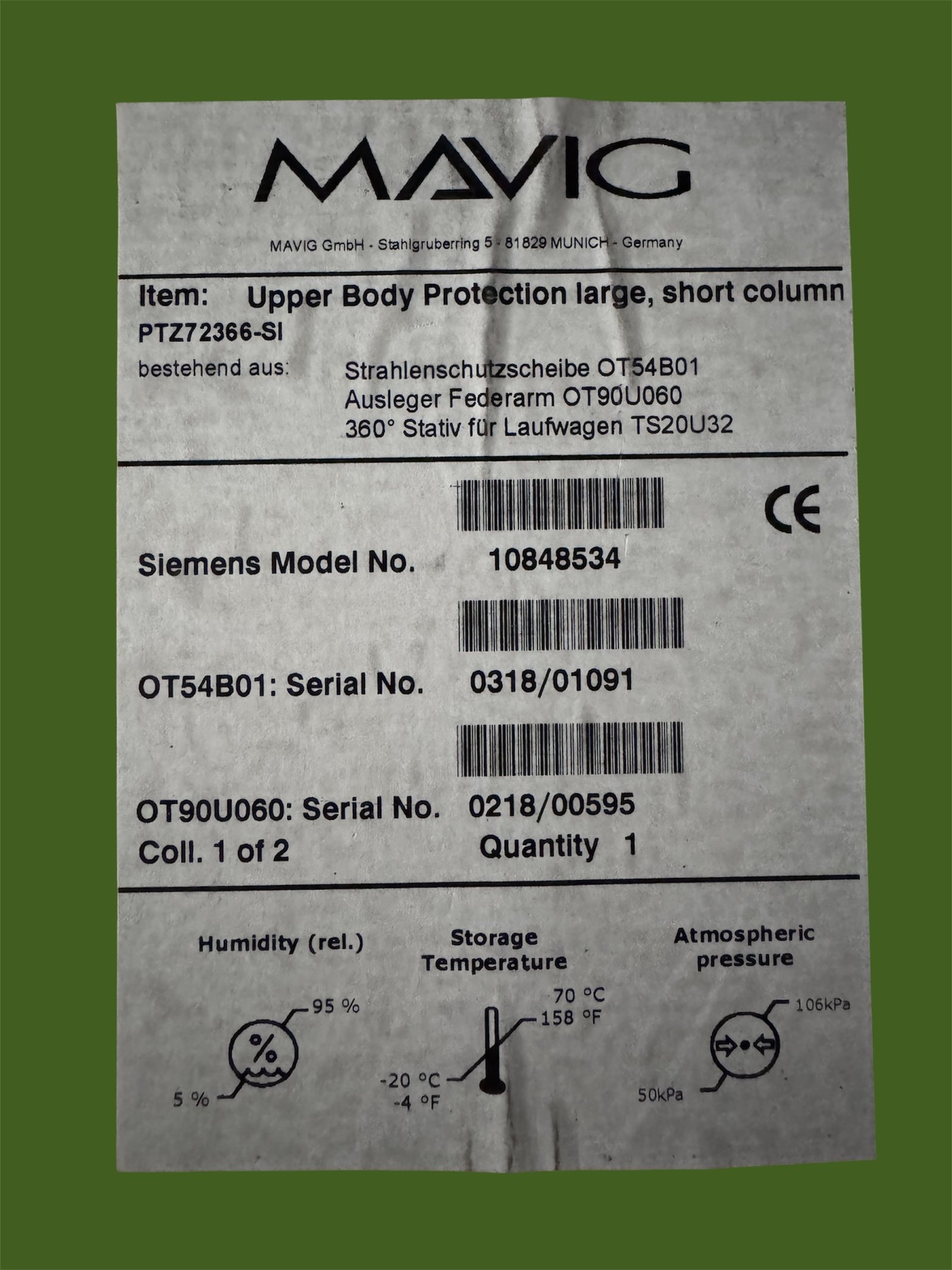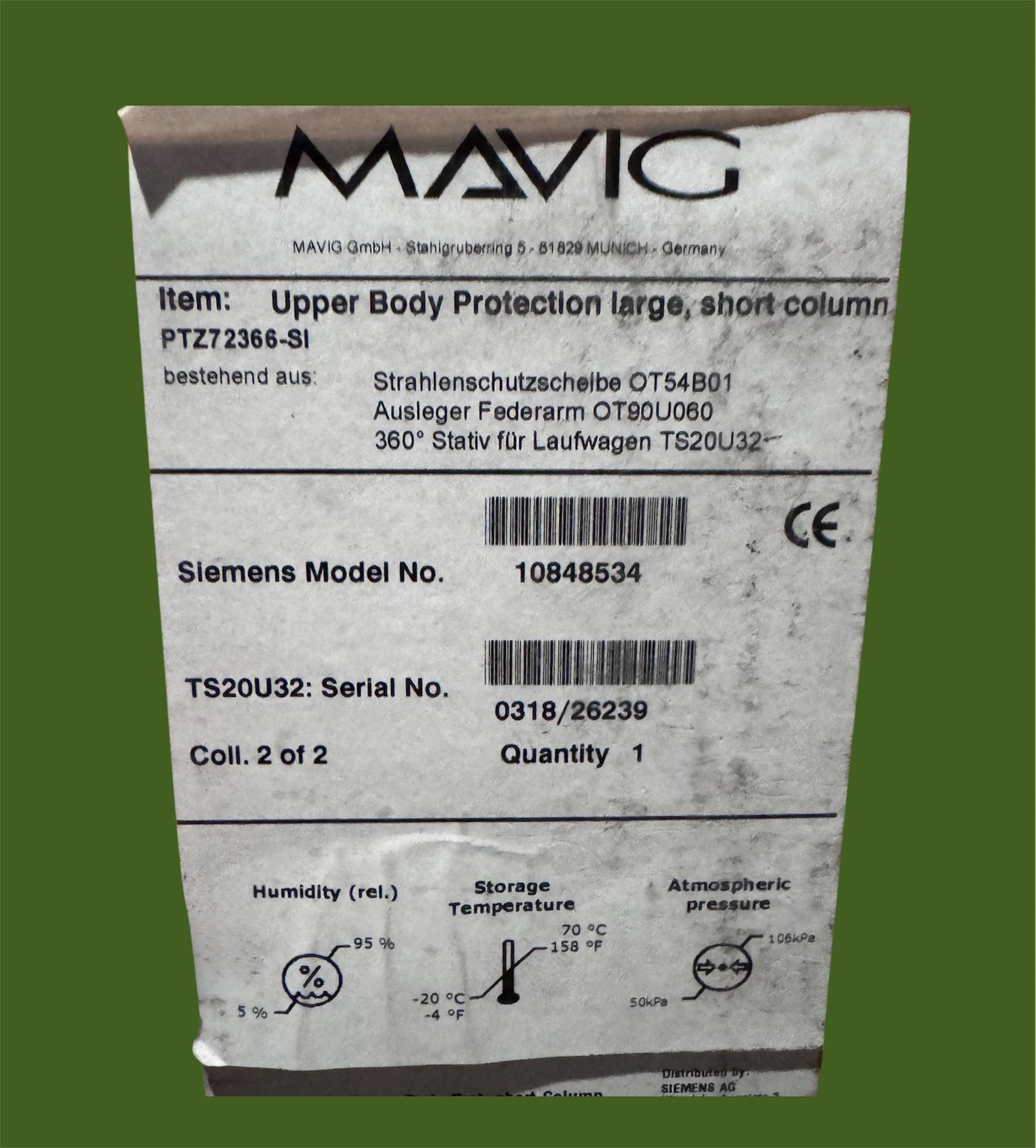 The MAVIG PTZ72366-SI Upper Body Protection System is a premium German-engineered ceiling and column-mounted radiation protection solution designed for maximum operator safety in interventional radiology, cardiology, and surgical imaging procedures. This large, short column configuration delivers outstanding shielding performance while allowing flexible, ergonomic movement for the clinical team.